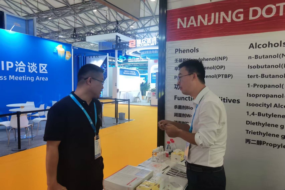 اجتذب جناح Dotachem عددًا كبيرًا من زوار الصناعة للاستفسار. يقدم مدير الأعمال لدينا للزائرين مقدمات مفصلة عن المنتج وتفسيرات فنية، ويقدم حلولًا مخصصة بناءً على الاحتياجات الفردية للعملاء. من خلال التواصل التفاعلي في الموقع، وصلنا إلى نوايا التعاون التجاري مع العديد من الشركات.