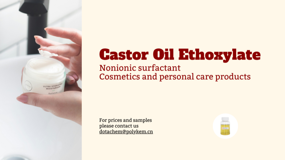 زيت الخروع الإيثوكسيلاتهو الفاعل بالسطح غير الأيوني الذي ينتج عن تفاعل زيت الخروع الطبيعي مع أكسيد الإيثيلين. لديها قدرة مستحلب ممتازة وزيوت التشحيم ، وتستخدم على نطاق واسع في المجالات الصناعية وكذلك في الرعاية الشخصية وتنظيف المنازل.
